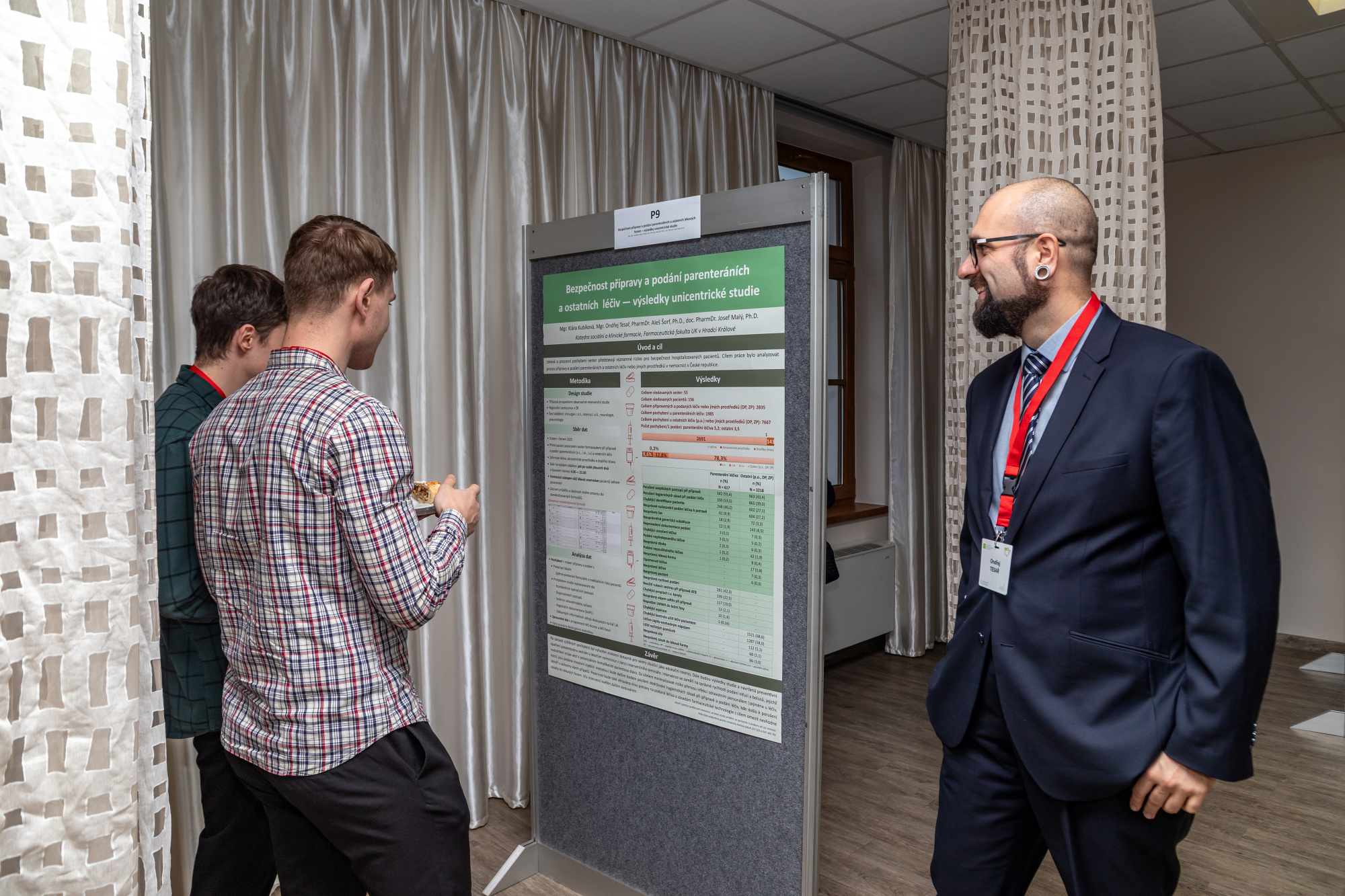 Právě aktuální vědecko-výzkumné práce v oblasti klinické a sociální farmacie nebo farmaceutické péče byly prezentovány formou plakátových a ústních posterových sdělení. Odborná komise vyhodnotila nejlepší práce, přičemž ze šesti ústních posterových sdělení byla jako nejlepší hodnocena práce PharmDr. Stanislava Gregora s názvem „Optimalizace času v terapeutickém rozmezí u pacientů s mechanickou srdeční podporou HeartMate 3 pomocí farmaceutem vedené antikoagulace s využitím farmakogenetiky warfarinu“ a z 22 posterů byla jako nejlepší oceněna Mgr. Gabriela Strnadová za práci „Standardizace hodnocení inhalační techniky – validace nástroje Five Steps Assessment“. Oba autoři působí jako studenti doktorského studia na Katedře sociální a klinické farmacie FaF UK.