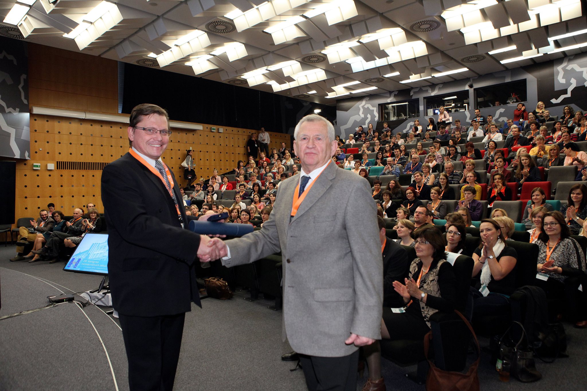 Hlavní sobotní program měl slavnostní atmosféru. Z rukou předsedy výboru České farmaceutické společnosti prof. PharmDr. Martina Doležala, Ph.D., převzal Čestnou medaili ČLS JEP, z. s., prof. RNDr. Václav Suchý, DrSc., za celoživotní přínos v oblasti farmacie. Za dlouhodobý přínos a práci ve prospěch nemocniční farmacie v České republice získali ocenění kolegyně a kolegové z řad nemocničních lékárníků: RNDr. Jana Střítecká, PharmDr. Helena Rotterová, MBA, PharmDr. Marie Zajícová, PharmDr. Vladimír Holub a Mgr. Jiří Kotlář.